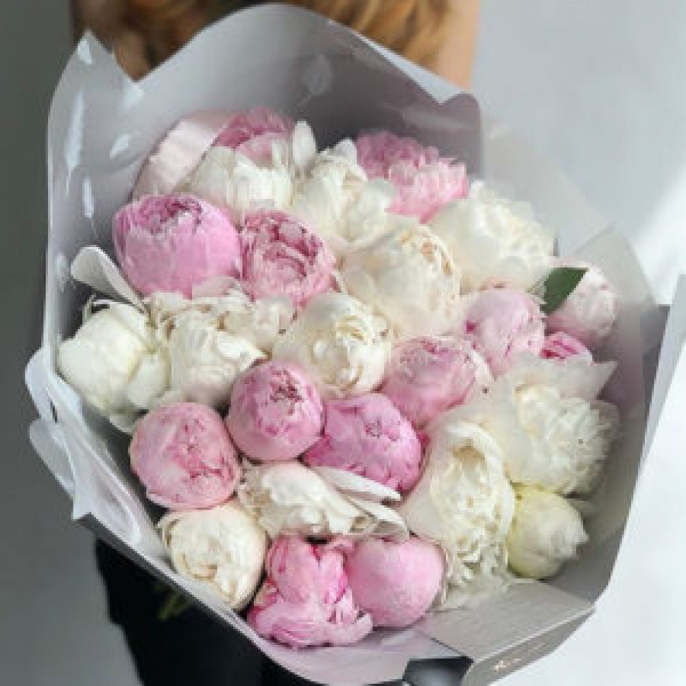 Подарите незабываемую красоту с этим роскошным букетом из 41 пиона. Эти изысканные цветы, полные нежности и утонченности, будут прекрасным выбором для любого значимого события или чтобы выразить свои искренние чувства.