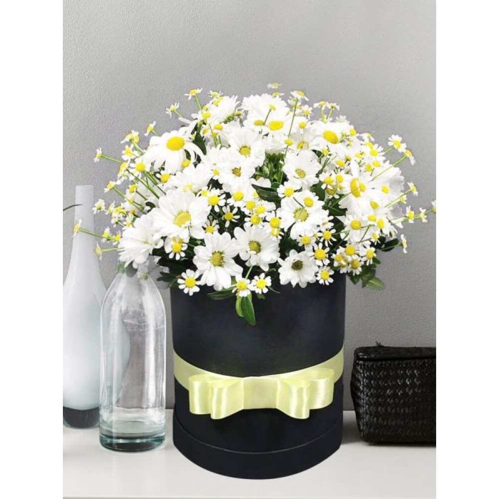 Изящные и свежайшие ромашки в ультрамодной стильной коробке - это по-настоящему желанный подарок. Эта композиция для женственных и элегантных девушек, имеющий тонкий вкус. Заказав такую коробку, вы точно не прогадаете.