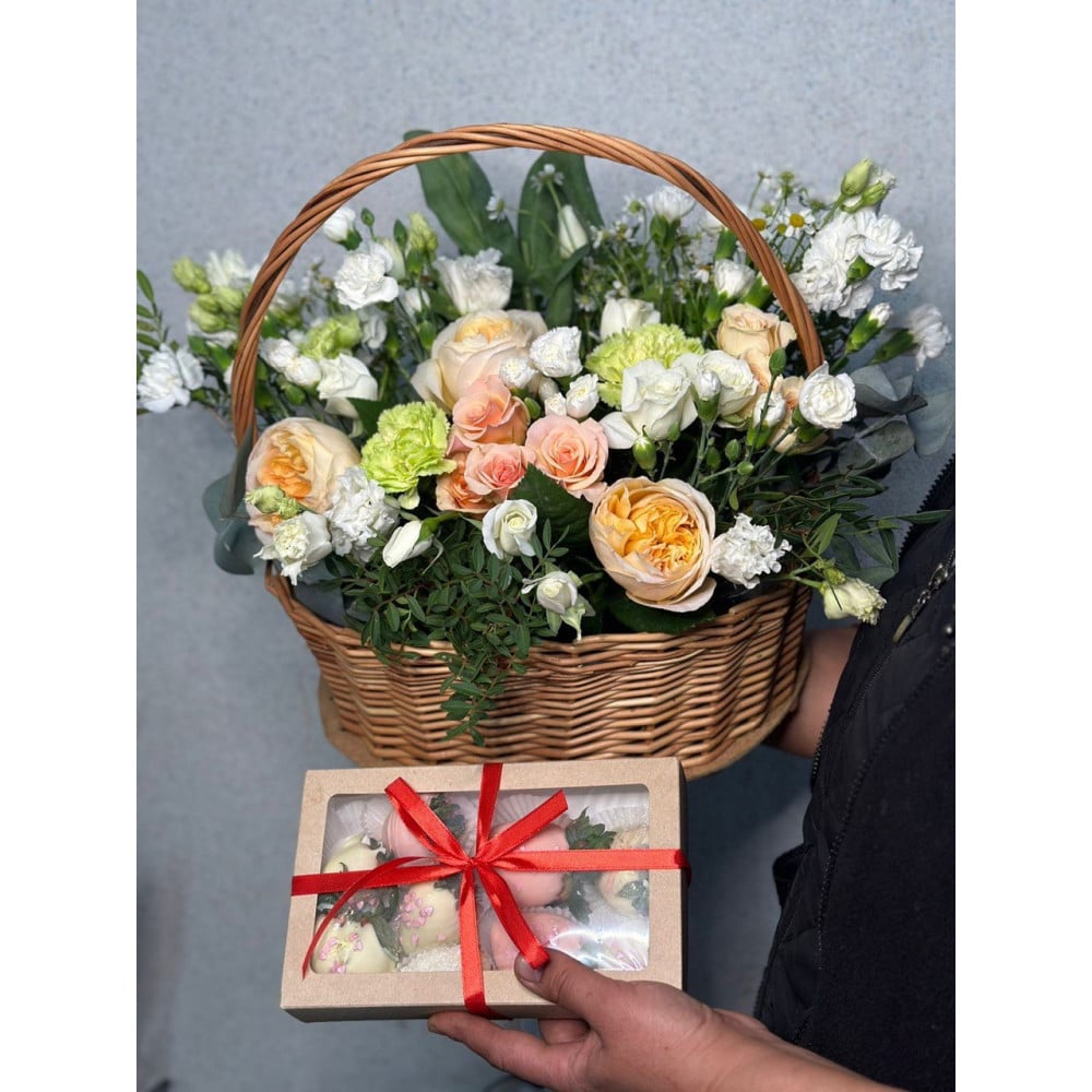 Дорогие клиенты, хотим Вам сообщить, что каждая наша композиция индивидуальна, и каждый наш флорист вкладывают душу в собранные им композиции, и букета в точь в точь не бывает. в зависимости от сезона и наличия цвета букет может отличаться до 30%