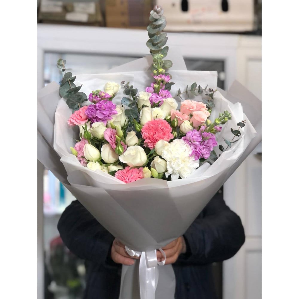Дорогие клиенты, хотим Вам сообщить, что каждая наша композиция индивидуальна, и каждый наш флорист вкладывают душу в собранные им композиции, и букета в точь в точь не бывает. в зависимости от сезона и наличия цвета букет может отличаться до 30%